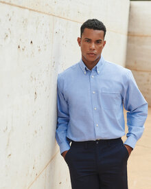 - Cotton rich oxford shirt with wrinkle resistant finish for easy care